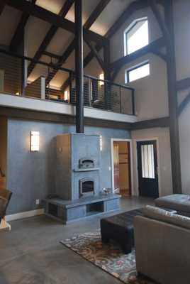 Passive solar design minimizes heating cooling requirements; super-insulated SIPS building envelope and triple-glazed windows; heat recovery ventilation; 6 kW of PV panels, grid-tied; an electric boiler for in-floor radiant heat